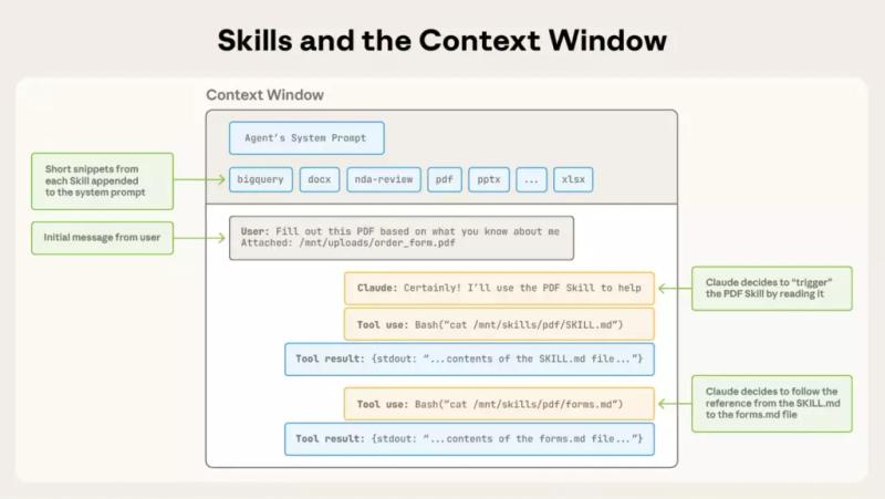 Этот принцип позволяет навыкам содержать фактически неограниченный объём контекста. Агент не читает весь навык целиком — только то, что нужно для текущей задачи.